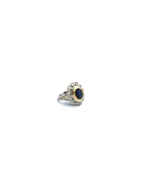 Anello vintage anni '60 in oro bianco 18K con zaffiro e diamanti