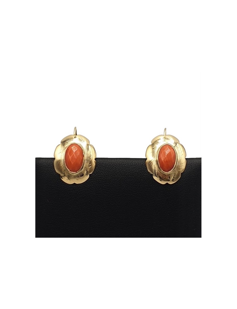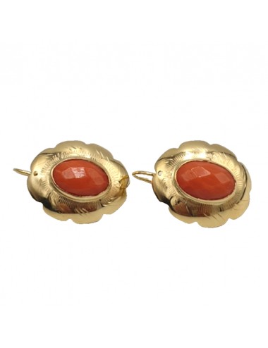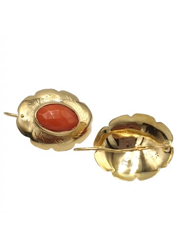 Orecchini a monachella vintage anni '60 italiano in oro giallo massiccio 18 carati, testato professionalmente e punzone 750, con spola di corallo martellato rosso cerasuolo.
